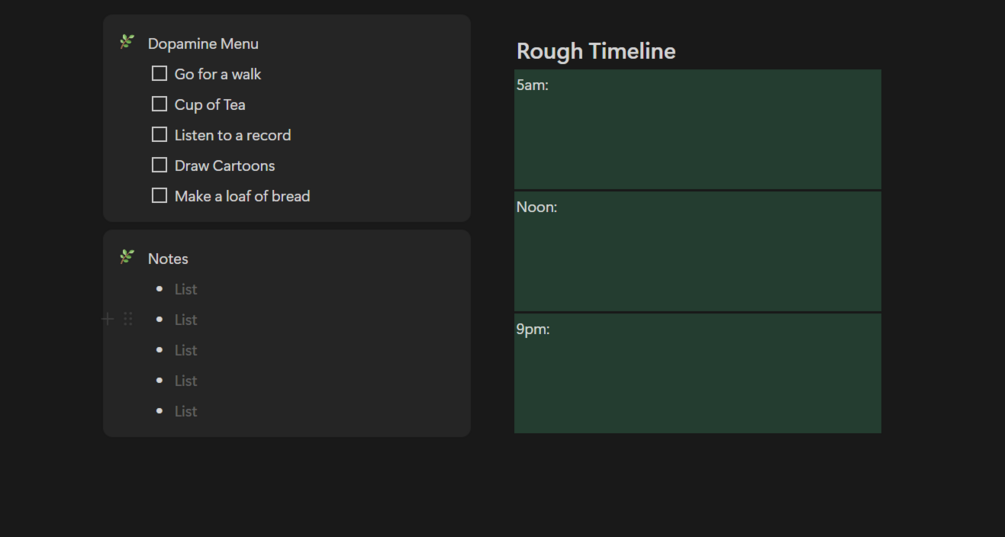 Inside, you'll find the exact Notion templates I use to stay grounded, plan big, and keep my ADHD from running me around willy nilly until I inevitably collapse into a void of spiraling entropy. Whether you're building a dream, recovering from burnout, or just trying to drink more water — there's a page in here for you.